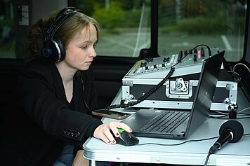 Ebenfalls mit einem Stand auf P2 vertreten waren die Campusmedien Düsseldorf. Dort informierten sie die Erstis nicht nur über hochschulradio düsseldorf und cm3, sondern Musikredakteurin Emma Best sorgte auch mit live aufgelegter Musik für Stimmung. Ein Glücksrad sowie eine Fotobox rundeten das Angebot am Stand ab.