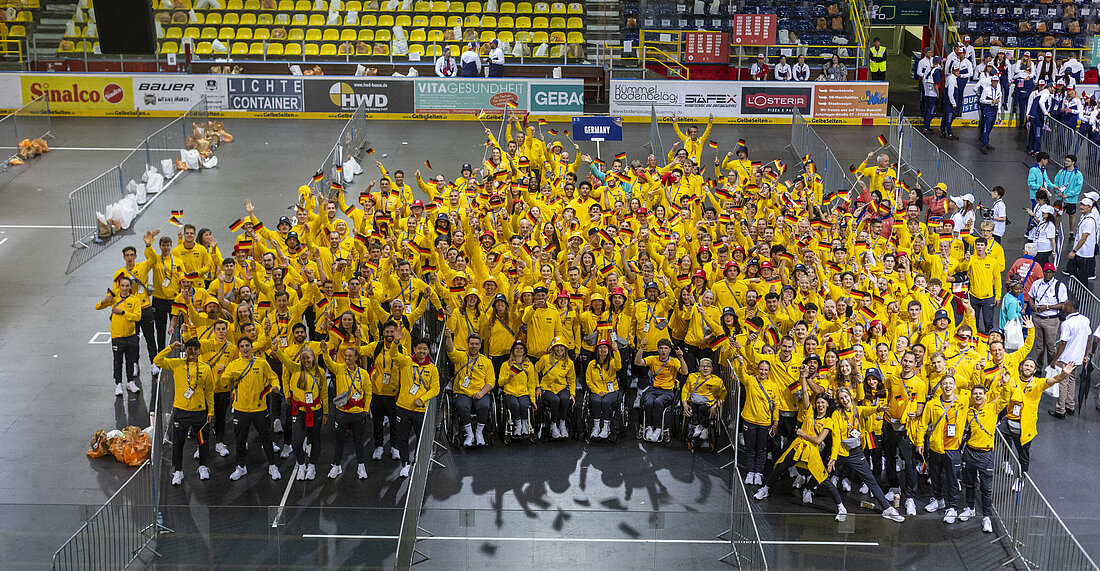 Beim Einlauf der Nationen feierten über 20.000 Zuschauer:innen die deutsche Delegation: 305 Studierende aus ganz Deutschland traten als Team Studi an. Die deutschen Fahnenträger:innen waren Top-Sportler:innen wie die Turnerin Kim Bui, der Säbelfechter Max Hartung oder die Schwimmerin Sarah Wellbrock. Die Olympiasiegerin Heide Ecker‑Rosendahl trug die Fackel in die Arena. Sechs Feuertürme wurden damit entzündet. Sie sollten Kraft, Inspiration und Zusammenhalt symbolisieren.