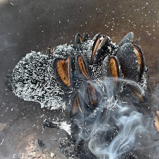 Rauch steigt langsam auf, ein leises Knacken und dann öffnet sich langsam die Frucht und enthüllt einen kleinen Samen. Auf den ersten Blick wirkt es ein wenig sonderbar eine Pflanze anzuzünden, doch genau das machen Lars Leonhard und Cosima Dinort, zwei Reviergärtner:innen im Botanischen Garten. Denn Pyrophyten brauchen genau das, um sich fortzupflanzen. Früchte oder auch Zapfen der Pyrophyten öffnen sich durch Hitze. Dadurch fallen Samen in die fruchtbare Asche und bekommen so die Möglichkeit zu keimen. Ein wichtiger Faktor ist dabei die Konkurrenz. Durch die spezielle Anpassung, Feuer zu nutzen, haben Pyrophyten einen enormen Vorteil gegenüber anderen Pflanzen. Denn sie keimen nun in einem konkurrenzfreien Umfeld, da alle anderen Pflanzen und deren Samen verbrannt sind.